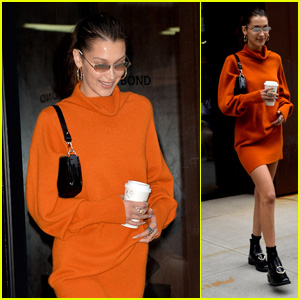 Bella looked chic in an orange dress and black shoes as she left her sister’s apartment.
