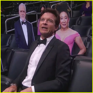 The Ozark actor is actually up for an award tonight – Outstanding Lead Actor in a Drama Series – was was seen sitting in between cutouts of fellow nominees Hugh Jackman, Sandra Oh and many others in the empty theater.
