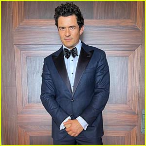 FYI: Orlando is wearing a wearing a patterned wool tuxedo jacket, wool and silk tuxedo trousers, tuxedo shirt, silk bow tie, and polished leather tuxedo Shoes by Brunello Cucinelli.